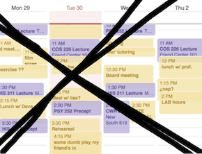 Things I collected during freshman year: friends (best, close, good, former), extracurricular activities, hook-ups, enough books to confidently shelve a small library, a GPA much lower than the one I had in high school, a battered but resilient sense of self-worth, a battered but resilient liver, and maybe some small amount of knowledge. All of this was great, except for one thing: I had no free time whatsoever.