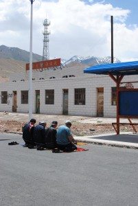 With the help of four officers in full fatigues, complete with bulletproof vests and too-shiny aviators, the gate slides open, revealing a perfectly paved, perfectly lined stretch of road, reaching into the Tian Shen Mountains. It’s a far cry from the potholed, blockaded road that leads to the gate from Kyrgyzstan.
