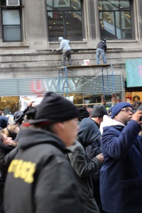 As the march progresses miles from Washington Square Park to midtown, people continue their workdays.