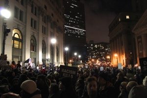 The official march leads to a rally around 6 p.m next to the US District Court and NY Police Headquarters. Even though this rally is dispersed after approximately 45 minutes, protestors continue to roam the streets.