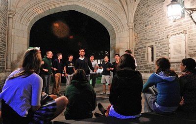 So, before I know it, I’m sitting in front of a closed door in the dim basement of Bloomberg. Next to me sits a girl who is obviously a pro at auditions, judging from the nonchalant way she picks up the sign-up paper and fills it in without pausing to read the instructions. Not that the questions are difficult: name, year, dorm room, previous singing experiences, if any (n/a), would I like to be notified by e-mail or in person if they are unable to offer me a callback (e-mail), can I beatbox (I can but only a little Kind of No). The girl next to me is still on the “Previous singing experiences” question, adding bullet points and throwing in jargon like “Alto 2” and “AP.” Inside the room, a girl is running up some scales, not simply à la The Sound of Music, but starting from some high note that I doubt I will be able to even croak out and gliding effortlessly up and down the octaves.