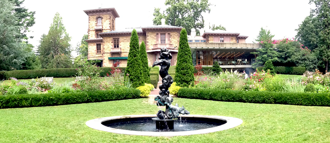 Actually, let’s rephrase that: Here’s the thing about sitting in an elevated glass box in the middle of a tourist attraction. Facing the garden are floor to ceiling windows replacing what could be solid walls. This layer of glass is sandwiched between two other stories, but no one pays attention to the upper level; the bottom layer is hidden behind hedges. Everyone dining in the main room—students, professors, guests, speakers—is on display for the daily wave of tourists.