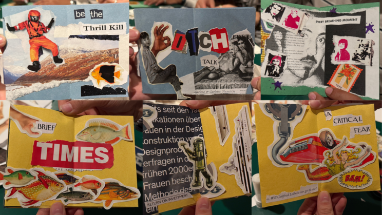 A collage of various pages from zines made by Grace Ding ‘29, Daniel Cho ‘29, Loapi Mokgatlhe ‘29. Courtesy of Leia Pei.