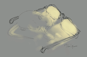 You sleep fretfully, stirring up the buttermilk air. It’s been through your lungs and mine. You’re grasping and grasping, with hands plump and rosy. For hours you’d screamed, straining and messing my hair until exhausted. I notice us in the windowpane and let my neck slacken and chin fall forward. A mahogany…
