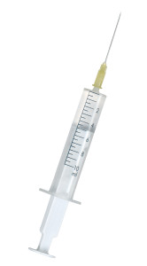 Syringe with needle on white background