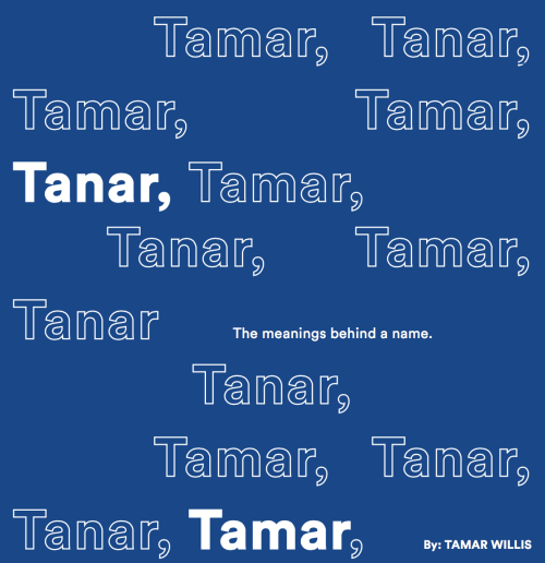 Recently, my friend Julia told me she doesn’t really feel like a Julia; her name feels detached from her personal conception of herself. It’s weird to think that your most basic unit of identification could feel so disconnected from your actual identity. I considered this for a moment, assessing whether I felt the same about mine. I decided that I do feel like a Tamar — not the prostitute kind, the date tree kind, or even the Tanar kind — but my own personal version of the name.